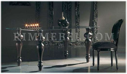 Прямоугольный стол с фигурными ножками, столешница - стекло. Возможны другие варианты отделки: крашенная в любой цвет образцов и д.р.
