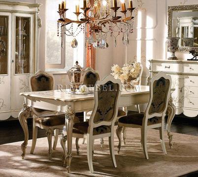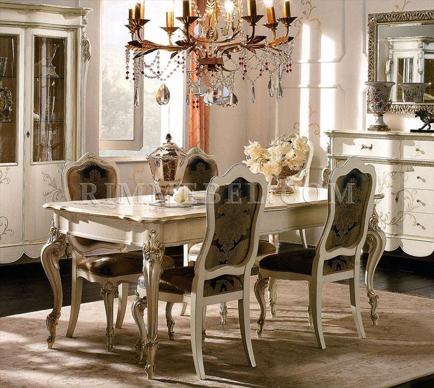 Прямоугольный обеденный стол. Декорирован резными элементами. Возможны другие варианты отделки.
