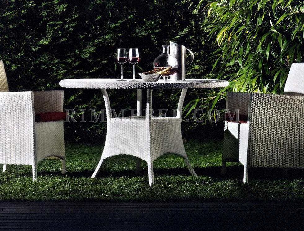 Стол. Каркас выполнен из алюминия с облицовкой из плетеного синтетического волокна. Дополнительно возможно заказать стеклянный топ