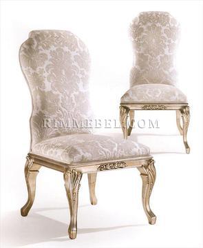 Стул, мягкие сидение и спинка. Декорирован резными элементами ручной работы. Наполнение - полиуретан. Возможны различные варианты обивки и отделки.