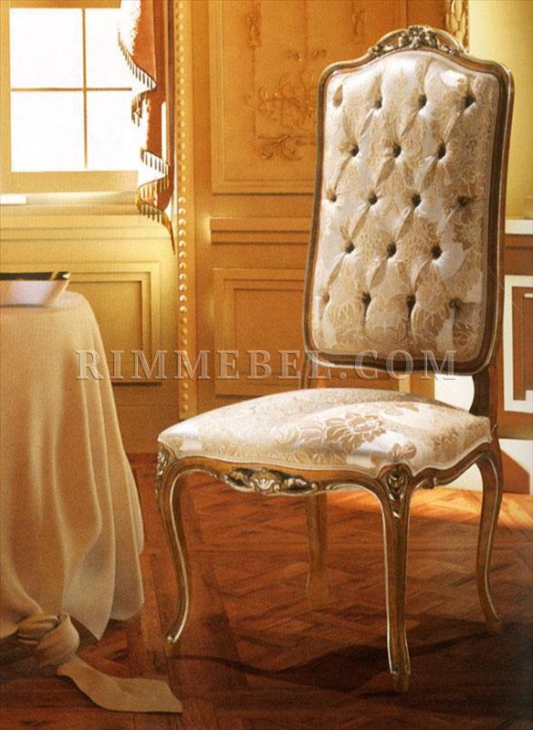Стул, мягкие сидение и спинка. Декорирован резными элементами ручной работы. Наполнение - полиуретан. Возможны различные варианты обивки и отделки.