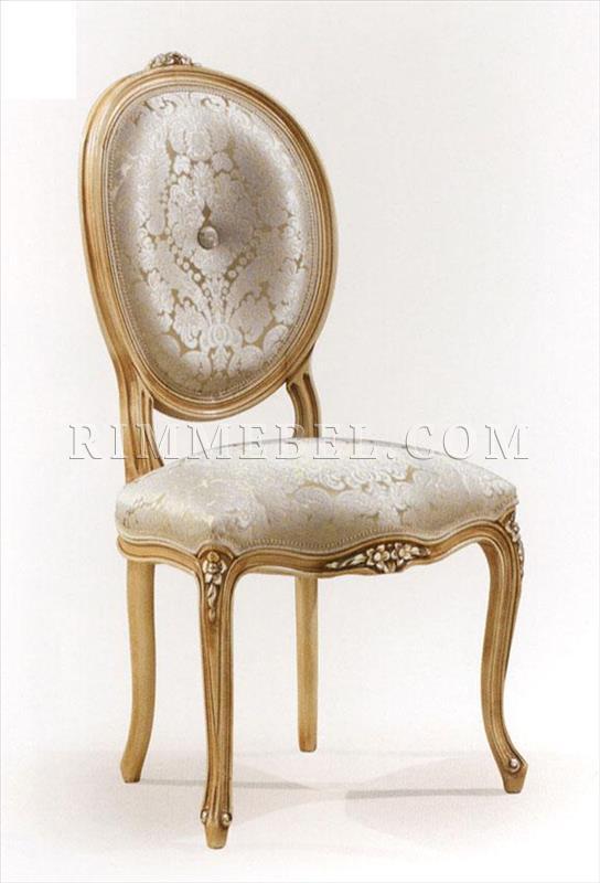 Стул, мягкие сидение и спинка. Декорирован резными элементами ручной работы. Наполнение - полиуретан. Возможны различные варианты обивки и отделки.