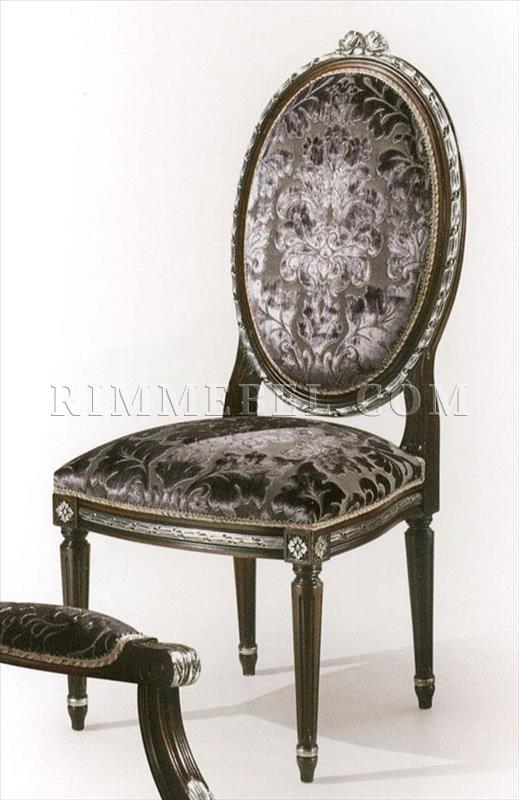 Стул, мягкие сидение и спинка. Декорирован резными элементами ручной работы. Наполнение - полиуретан. Возможны различные варианты обивки и отделки.