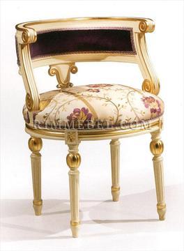 Стул, мягкие сидение и спинка. Декорирован резными элементами ручной работы. Наполнение - полиуретан. Возможны различные варианты обивки и отделки.