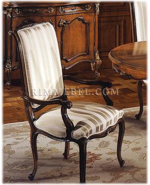Стул c подлокотниками, возможен вариант без подлокотников. Мягкие сиденье и спинка. Наполнение - полиуретан. Декорирован резьбой. Ручная работа. Возможны различные варианты отделки (красное дерево, махагон, охра, декапе и т.д.) и обивки.
