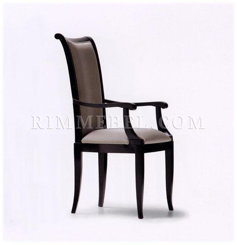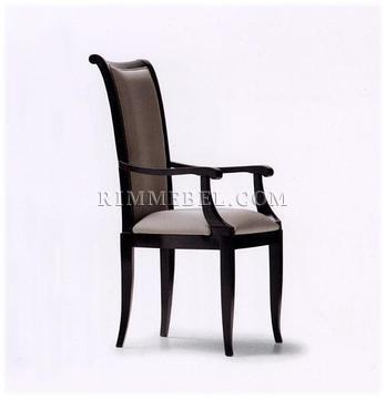 Стул с подлокотниками. Высокая спинка. Структура - массив дерева. Обивка - кожа, наполнение - полиуретан. Возможны различные варианты обивки и отделки