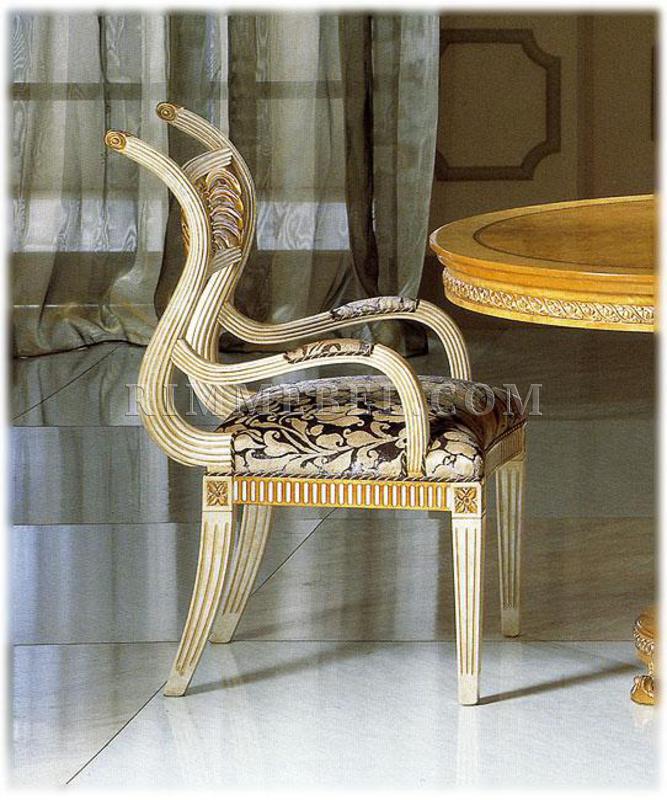 Стул, декорированный резьбой. Наполнение - полиуретан. Возможны другие варианты отделки и обивки, в том числе выполнение в ткани клиента