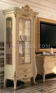 1-дверная витрина с 1-м ящиком. Полки выполнены из стекла. Декорирована резными элементами. Возможны различные варианты отделки.