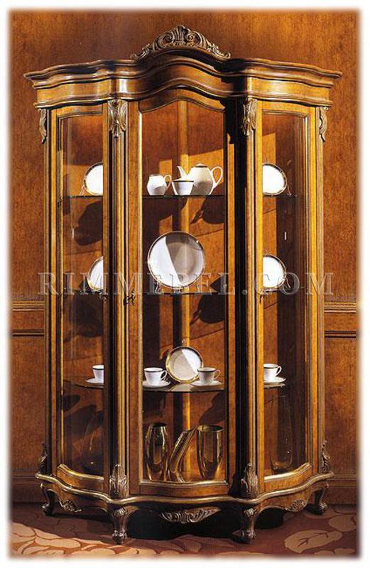3-х дверная полукруглая витрина, полки выполнены из стекла. Декорирована резьбой. Ручная работа. Возможны различные варианты отделки (красное дерево, махагон, охра, декапе и т.д.)
