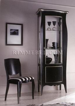 1-дверная витрина, полки выполнены из стекла, задняя спинка выполнена в отделке из ткани. Возможны другие варианты отделки.