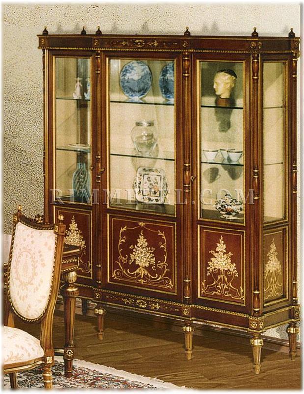 3-х дверная витрина, полки выполнены из стекла. Декорирована резными элементами. Возможны другие варианты отделки.