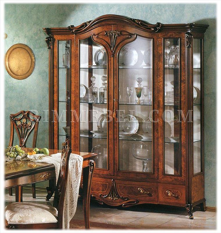 2-х дверная витрина с 3-мя ящиками. Полки выполнены из стекла. Декорирована резьбой. Варианты отделки - клен, ясень и др.