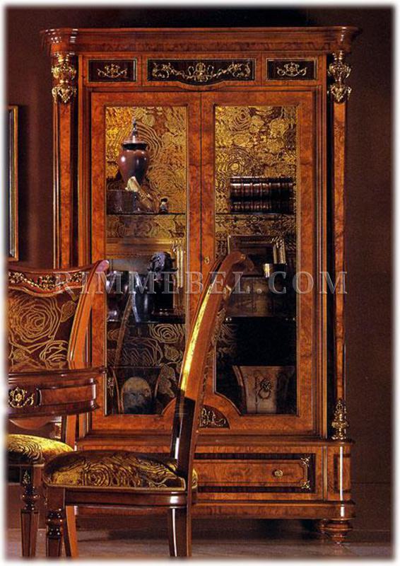 Витрина 2-х створчатая с выдвижным ящиком, декорированная резными элементами. Задняя стенка обита тканью. Возможны другие варианты отделки