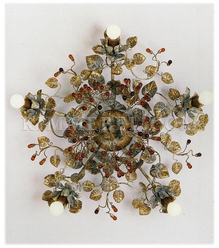 Люстра с 5-ю лампами. Декоративные элементы из муранского стекла. Возможны другие варианты отделки