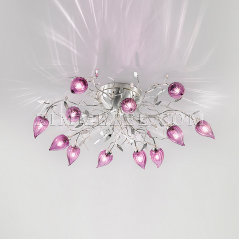 Люстра потолочная в отделке серебро, металл ручной ковки, плафоны стекло.