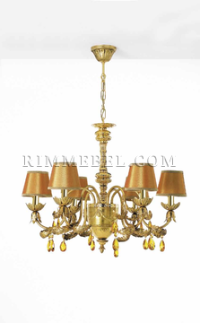 Люстра подвесная, структура металл, отделка золото, с кристаллами Swarovski, цвет янтарь.